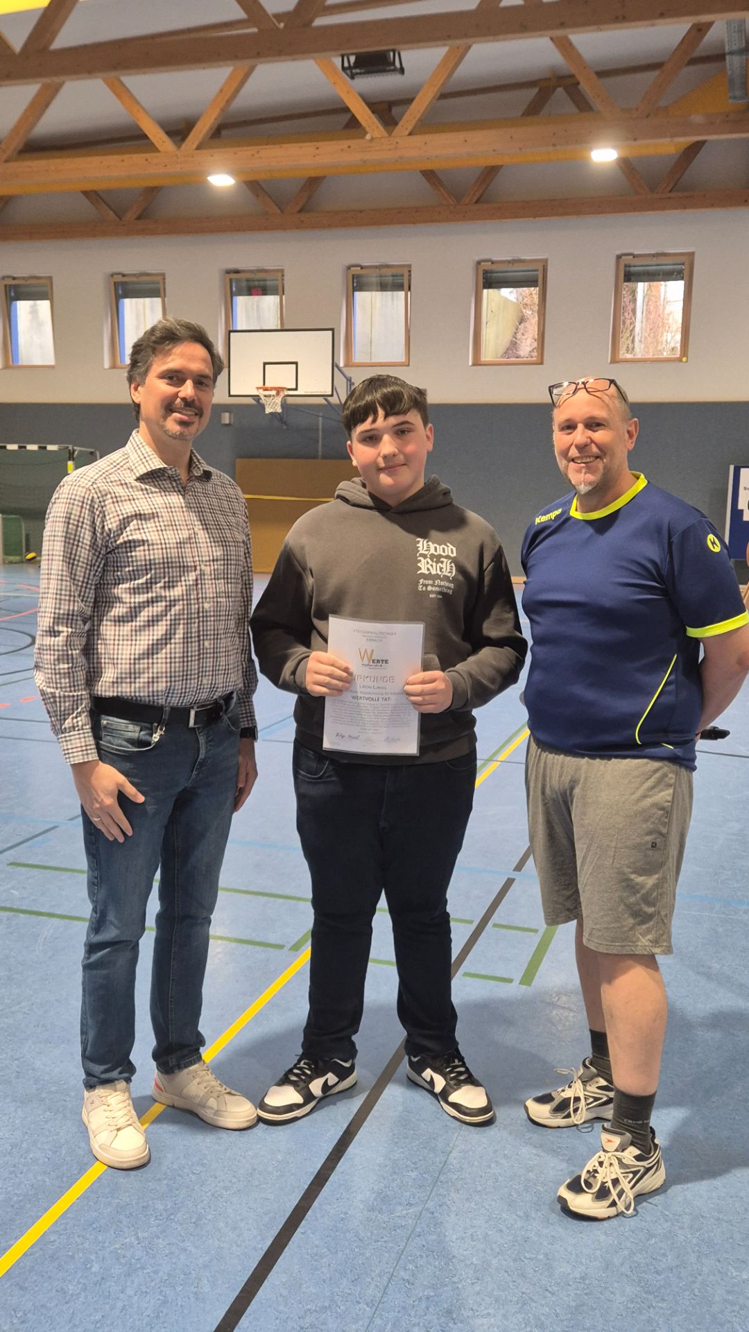 Traditionell zum Ende des Schulhalbjahres ehren wir an der Steigerwaldschule eine „Wertvolle Tat“. Am 13. Februar 2026 erhielt Leon Lang die mit 50 € verbundene Auszeichnung. Leon engagiert sich mit großem Einsatz im Technikteam und übernimmt dort die Rolle des Gruppenleiters. In dieser Funktion bringt er jüngeren Schülerinnen und Schülern geduldig und verantwortungsbewusst den Auf- und Abbau der technischen Anlagen bei. Besonders hervorzuheben ist, dass Leon bei jedem Auftritt bis zum Schluss anwesend bleibt, um die Technik zuverlässig zu steuern und einen reibungslosen Ablauf zu gewährleisten. Er übernimmt Verantwortung, handelt selbstständig und ist jederzeit ein verlässlicher Ansprechpartner. (sl)
