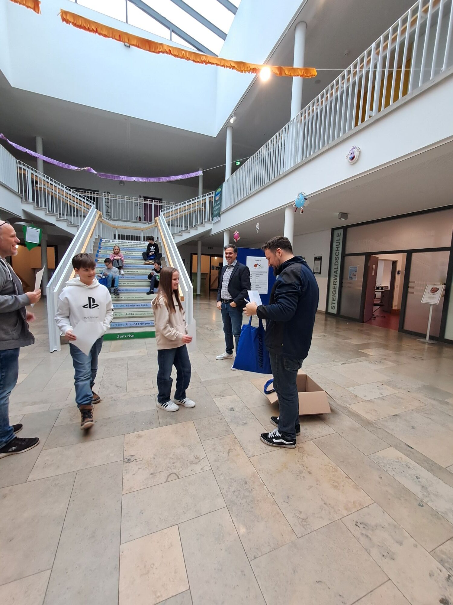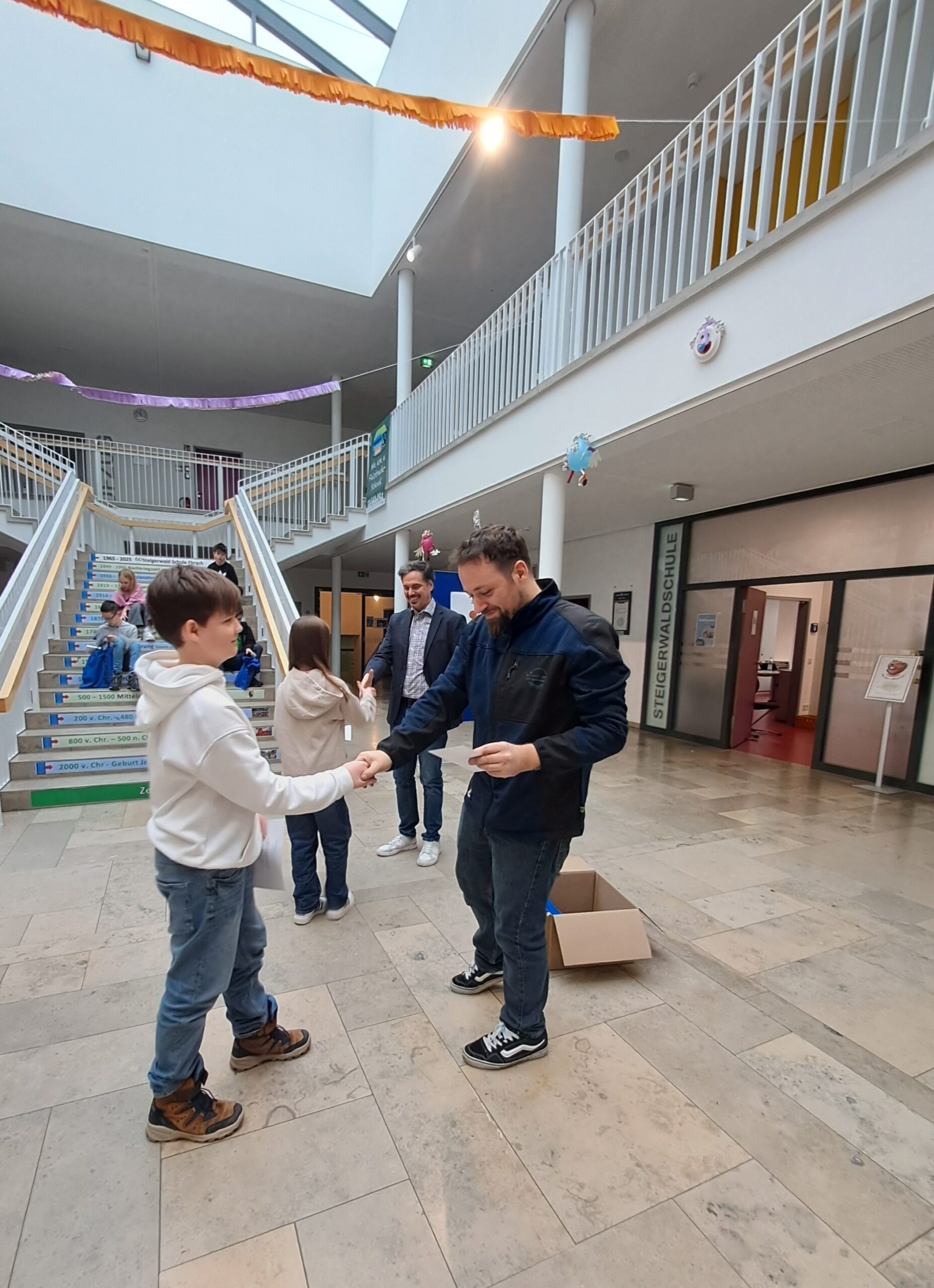 Alle Teilnehmer erhielten eine Urkunde und eine Aufmerksamkeit, die unser Kooperationspartner Stettler Kunststofftechnik GmbH & Co. KG. aus Untersteinach beisteuerte. Den beiden Siegern und dem Zweitplatzierten Luis Schuster (5c) überreichte Ausbildungsleiter Manuel Vinzens ein Geldpräsent. Wir sagen dafür herzlich Danke. (sl)