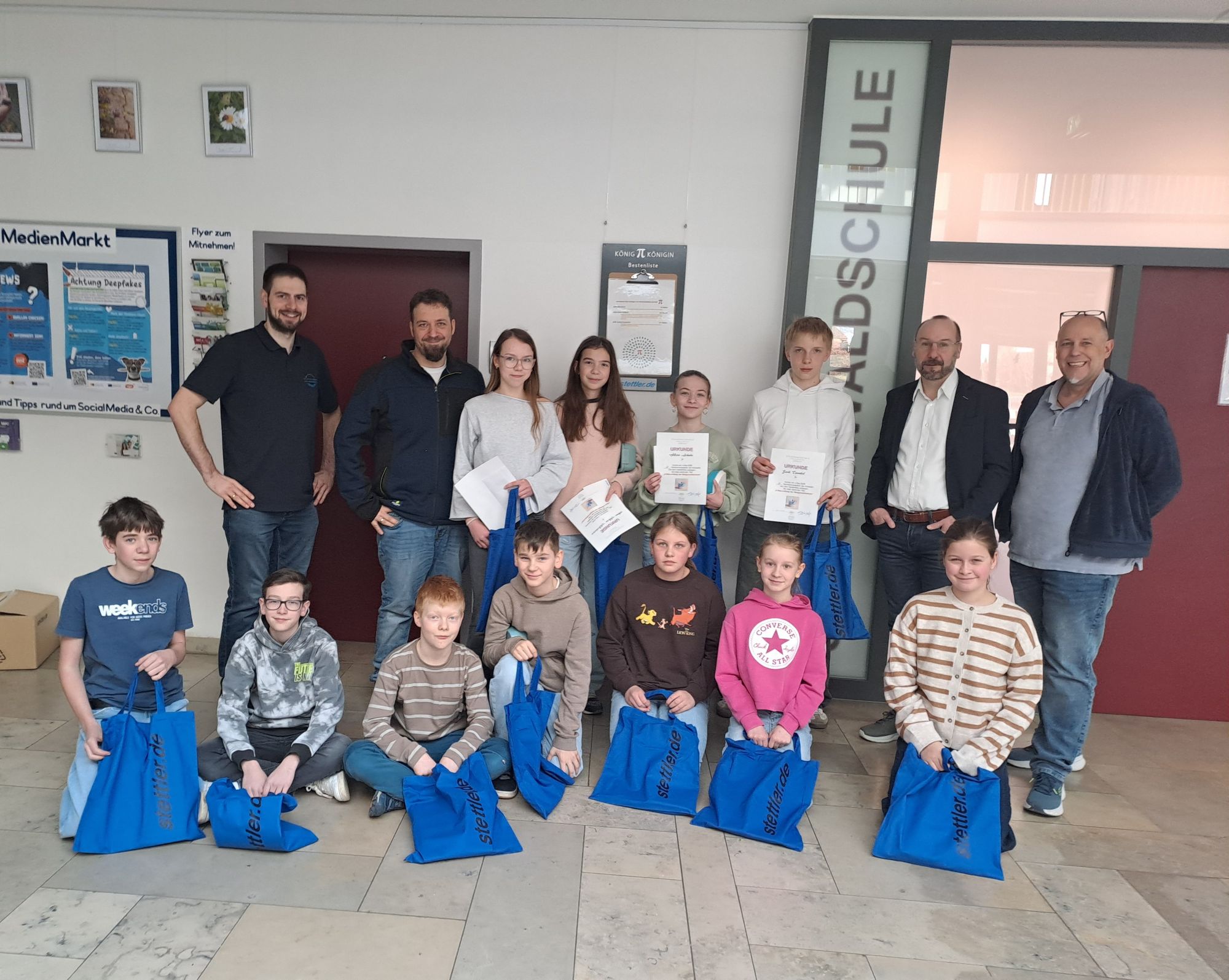 101 Stellen der Kreiszahl konnte sie fehlerfrei aufsagen. 10 Schüler weitere Schüler aus verschiedenen Jahrgangsstufen waren ebenfalls angetreten. Anne-Marie Nicolaescu (5b) wurde Vizekönigin mit 68 Stellen, gefolgt von Marie Schiebe (5b) und Janek Einenkel (9a), die  beide mit 57 Stellen wiedergeben konnten.