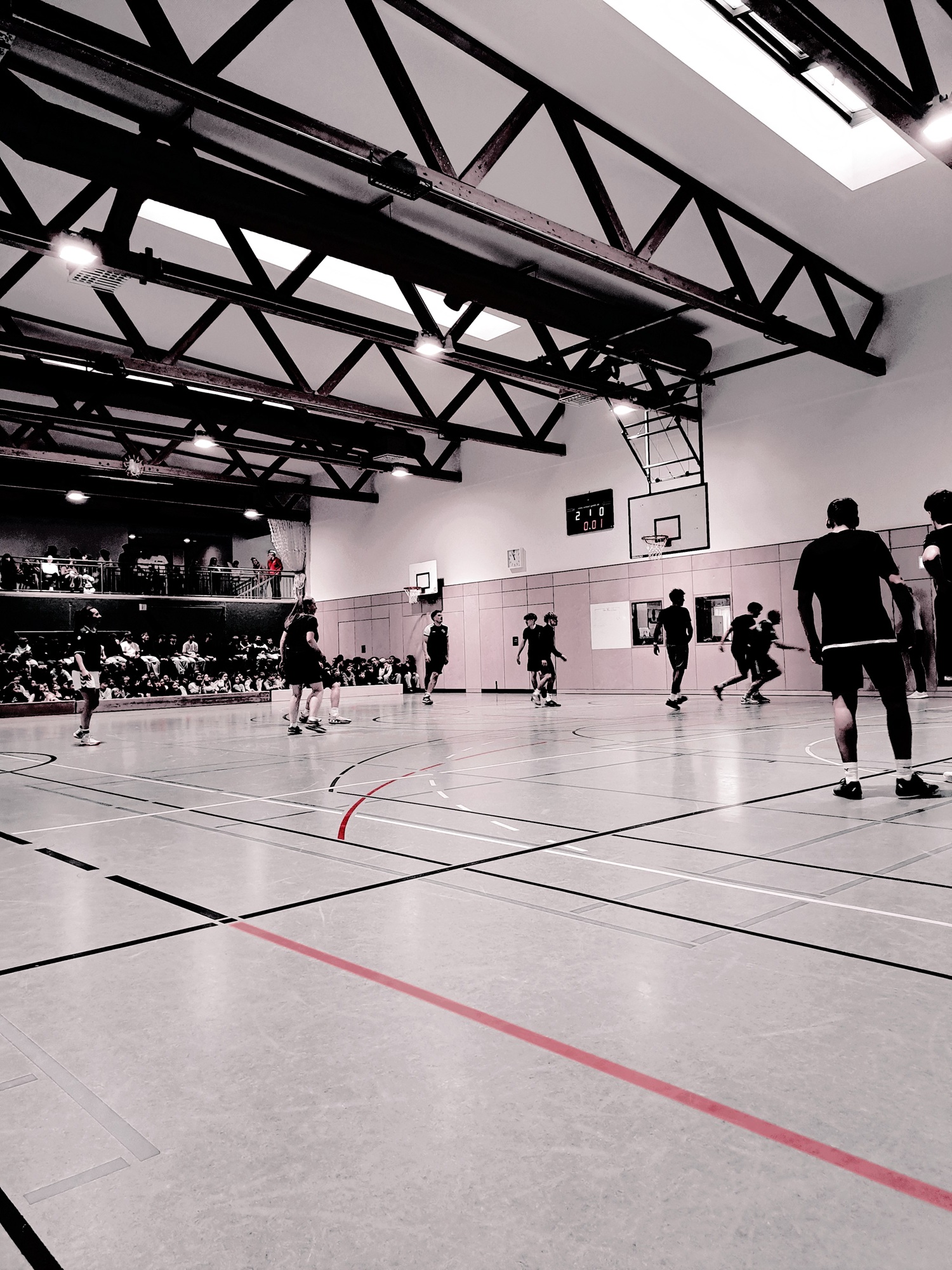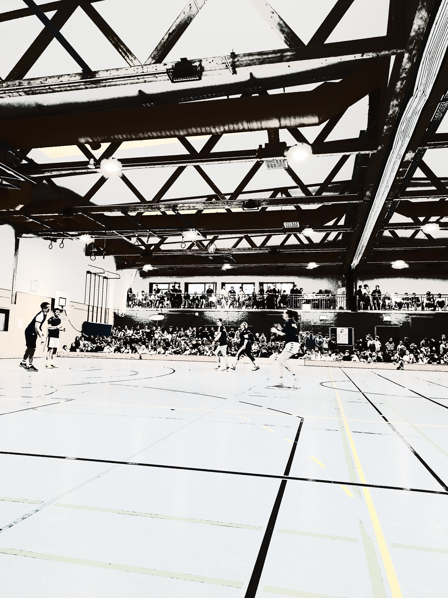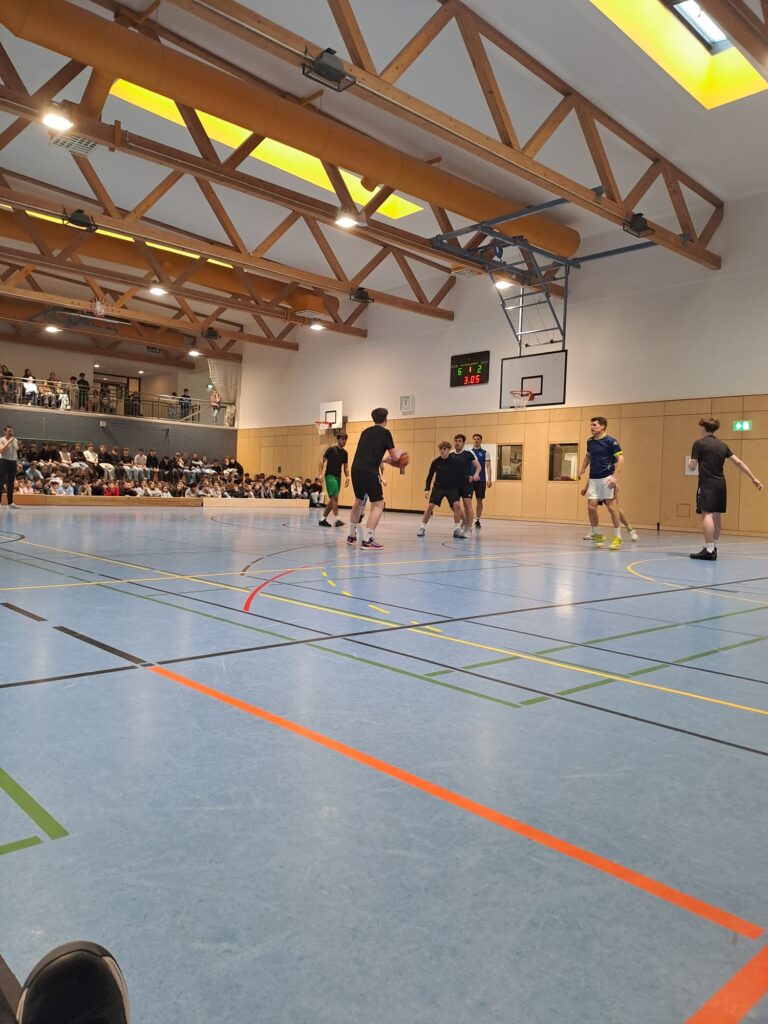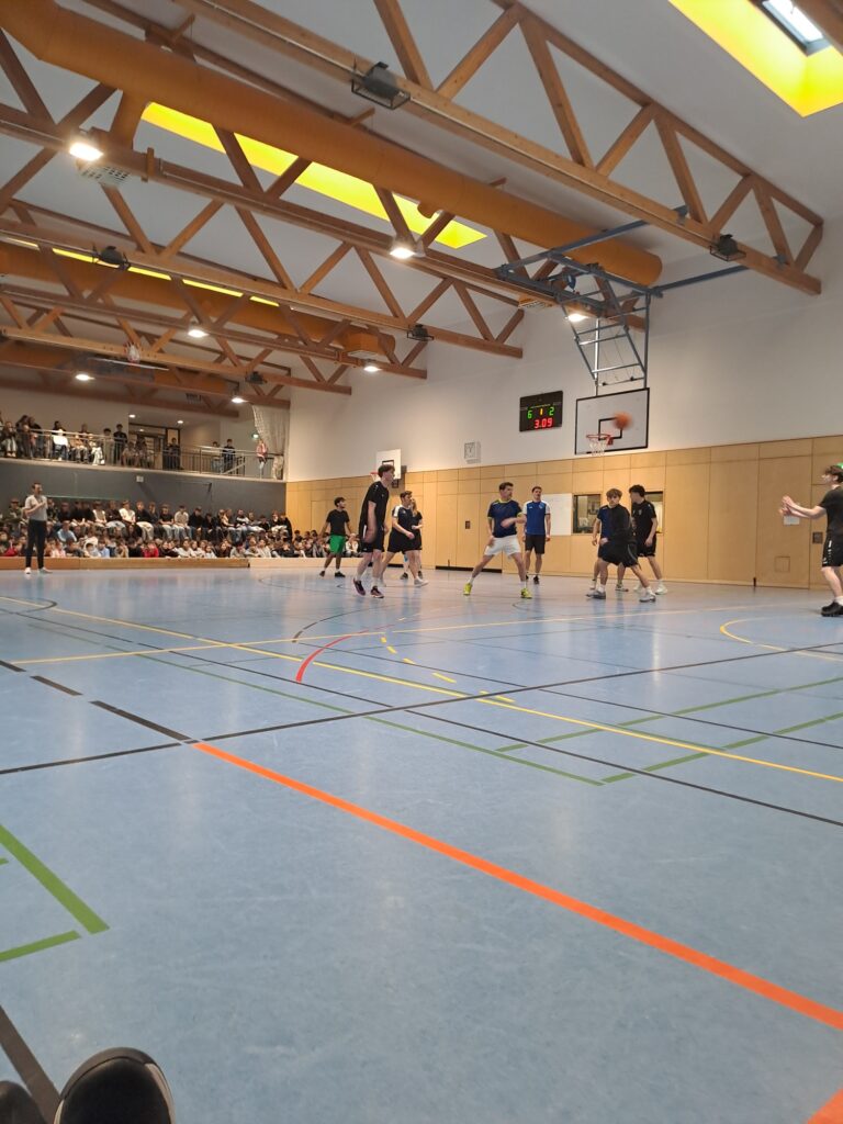 Nach der Ehrung der wertvollen Tat und dem stimmungsvollen Einmarsch der Sportler begann das Turnier mit einem Volleyballspiel in der mit über 500 Zuschauern prall gefüllten Turnhalle. Die Lehrer hatten die Partie nach kleinen Startschwierigkeiten stets im Griff und fuhren einen ersten souveränen Sieg gegen tapfer kämpfende und gut spielende Schüler ein. Auch beim Hockey im Anschluss behielten die Lehrer überraschend deutlich die Oberhand. Nach der Pause machte die ältere Generation dann beim Basketball mit einem umkämpften Sieg gegen sehr gut spielende Schüler den vorzeitigen Gesamtsieg klar. Im anschließenden Ultimate Frisbee zeigten die Schüler abermals ihr Können und gewannen knapp. Dass das abschließende sehr abwechslungsreiche Fußballspiel mit einem Sieg für die Schüler endete, war dann Balsam auf deren Wunden. Somit konnte am Ende jeder hoch erhobenen (und geröteten) Hauptes das Spielfeld verlassen. Die Schüler werden nächstes Jahr vorraussichtlich alles daran setzen, den Gesamtsieg von 3:2 für die Lehrer endlich mal in einen Schülersieg umzuwandeln… ™