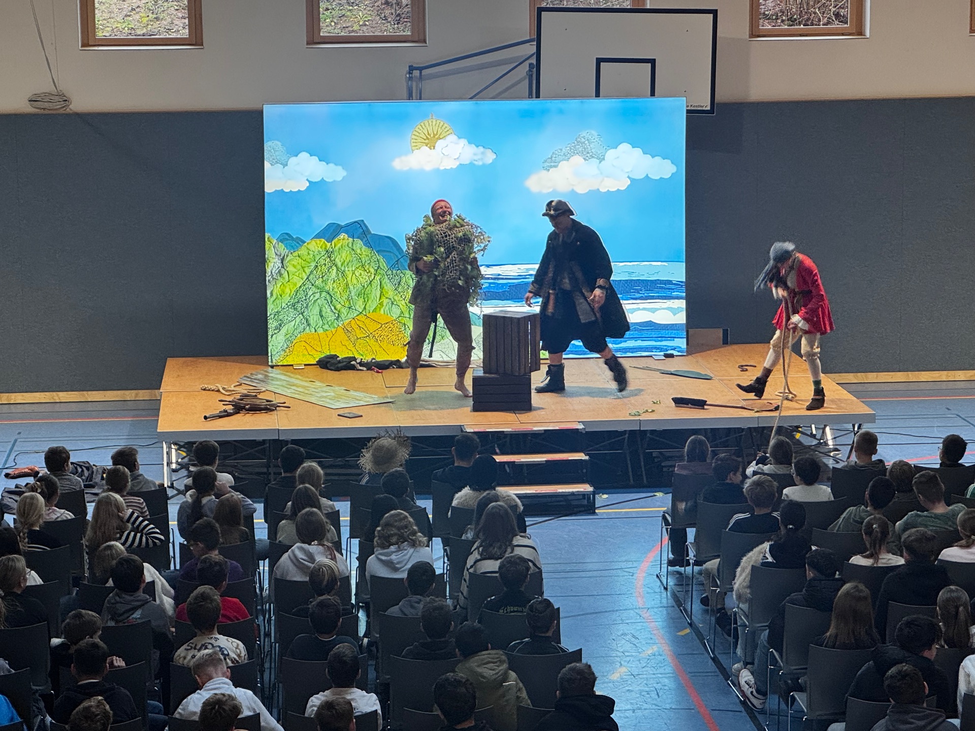 Die Klassen 8–10 sahen das ernstere Stück „Sticks and Stones“, das sich mit Mobbing und Ausgrenzung auseinandersetzt. Die Schülerinnen und Schüler verfolgten gespannt, wie verschiedene Formen von Konflikten dargestellt wurden und wie hilflos Betroffene sich fühlen können. Viele nutzten die Gelegenheit, im Unterricht später darüber weiterzudiskutieren.